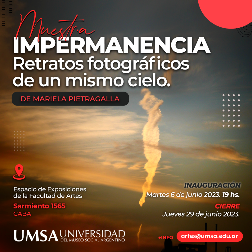 DESDE EL 6/6 AL 29/6 VISITÁ LA MUESTRA “IMPERMANENCIA. RETRATOS FOTOGRÁFICOS DE UN MISMO CIELO” 30 abril, 2023