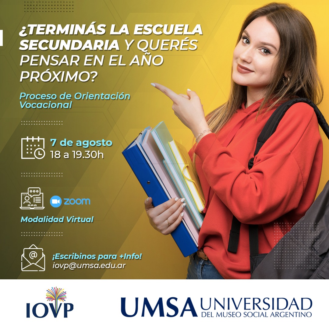 El IOVP (instituto de Orientación Vocacional) de UMSA te invita a la charla que se desarrollará el próximo 7 de agosto de 18 a 19.30h.