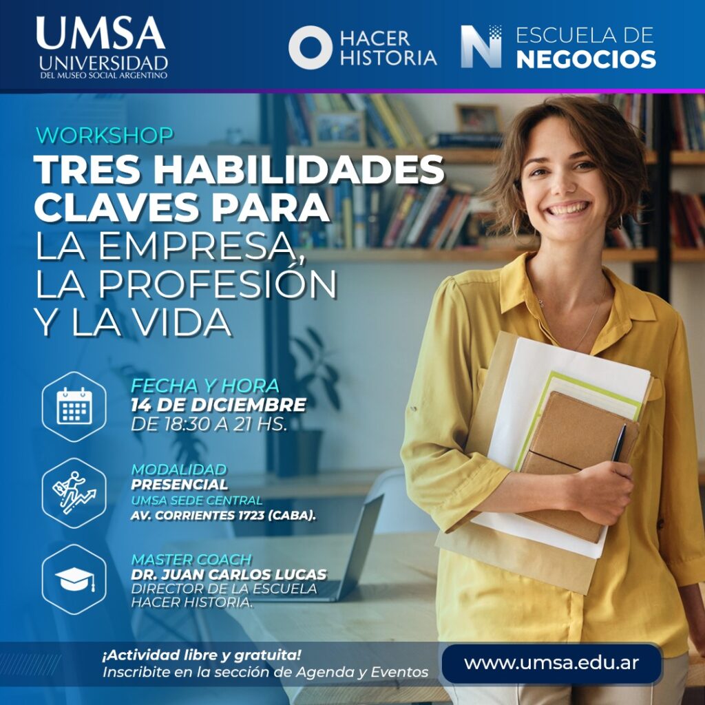 14/12 18HS. Workshop presencial “Tres Habilidades Clave para la empresa, la profesión y la vida” 7 diciembre, 2023