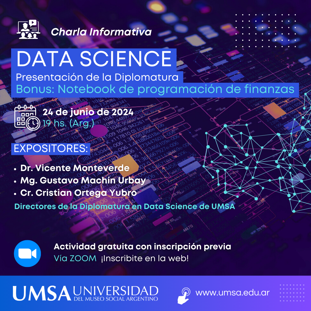 Lunes 24 de Junio 19hs. Charla informativa sobre la Diplomatura en Data Science en los Negocios + bonus track “Notebook de programación de finanzas”