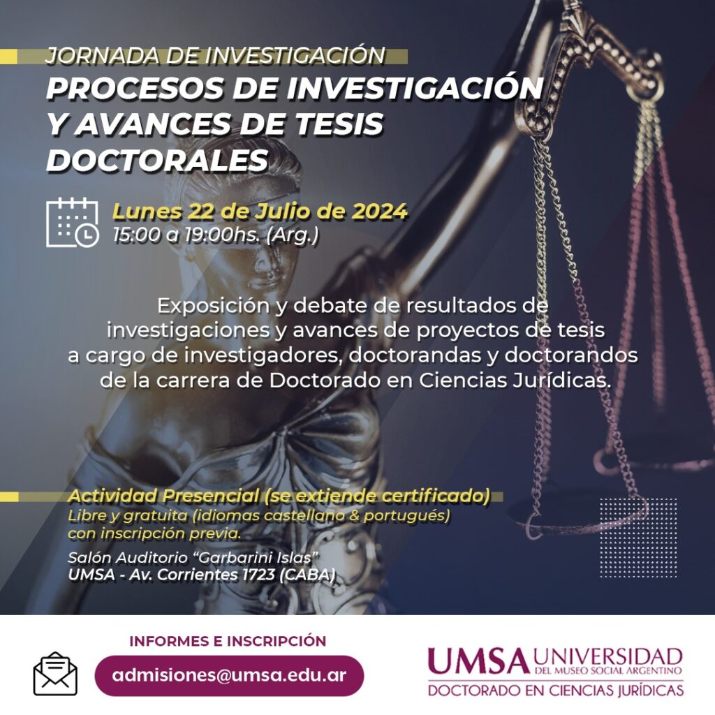 22/7 15 a 19hs (Arg.) Jornada de Investigación “Procesos de Investigación y avances de Tesis Doctorales”