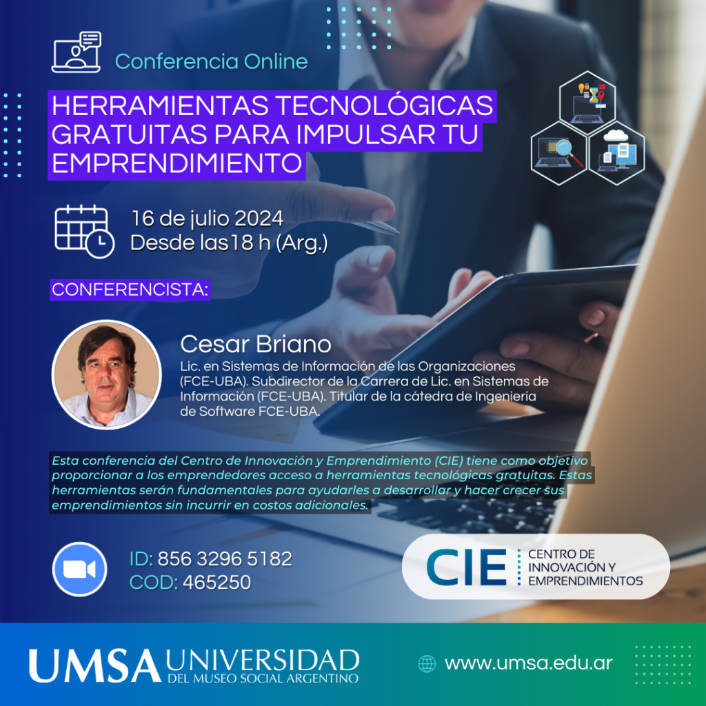 16/7 18hs (Arg.) Conferencia online “Herramientas tecnológicas gratuitas para impulsar tu emprendimiento”