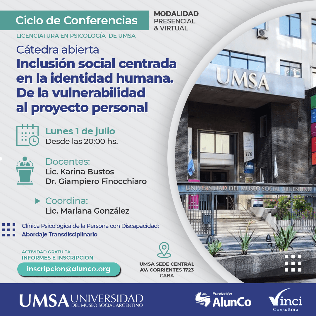 Lunes 1º de Julio 20hs. (Arg.) presencial en Av. Corrientes 1723 CABA – Sede central de UMSA. Actividad online y presencial con inscripción previa.
