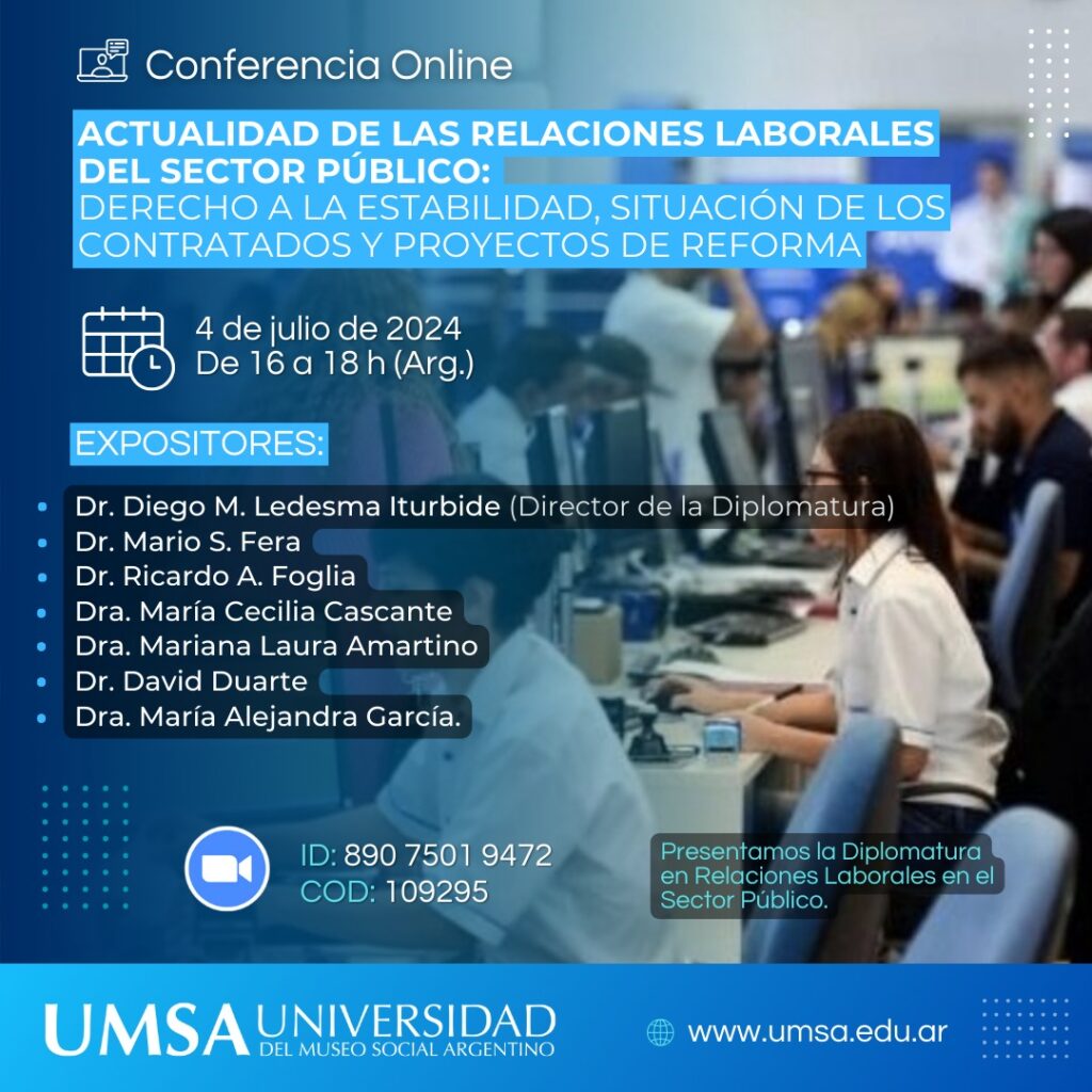 4/7 16hs (Arg.) Conferencia online: Actualidad de las Relaciones Laborales del Sector Público: Derecho a la Estabilidad, situación de los contratados y Proyectos de Reforma