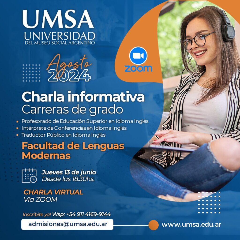 13/6 18.30hs (Arg.) Charla Informativa sobre las Carreras de la Facultad de Lenguas Modernas con inicio Agosto 2024