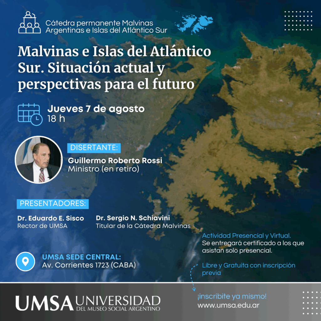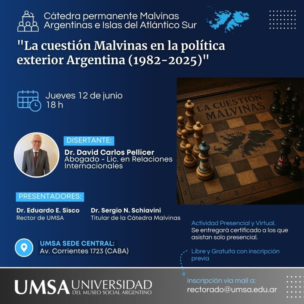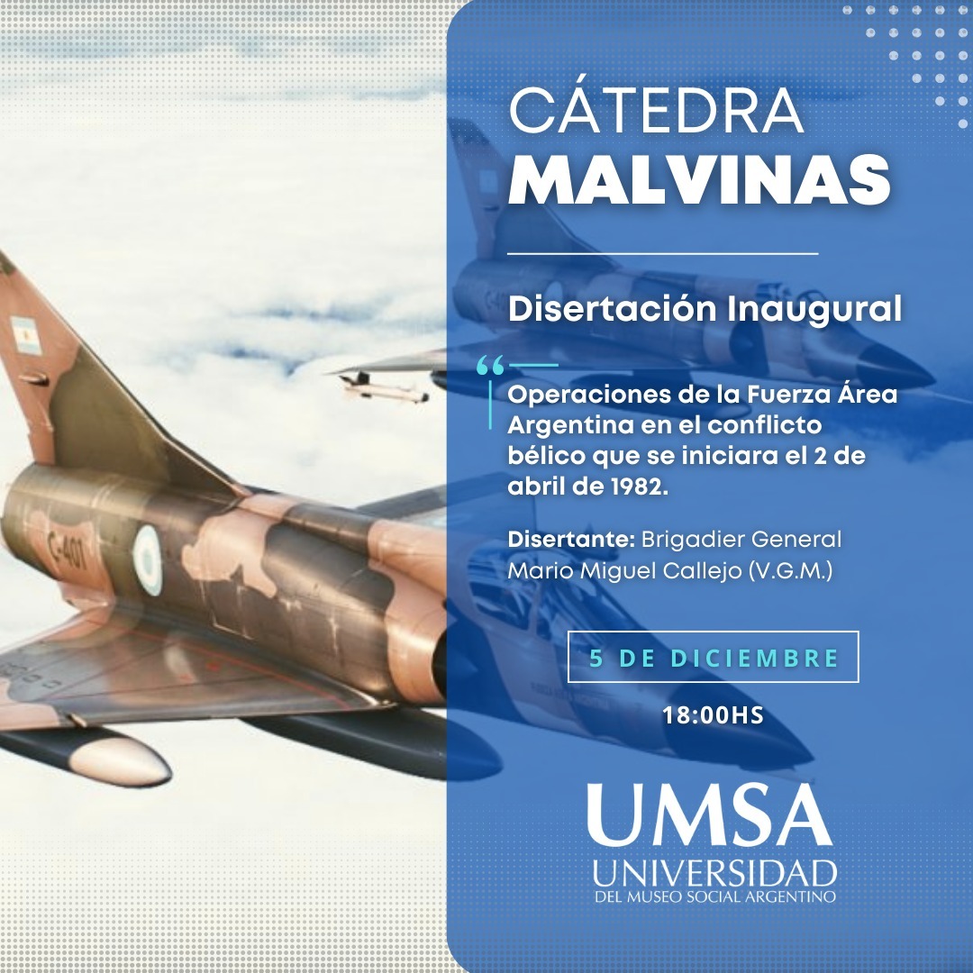 La Cátedra Permanente Malvinas Argentinas e Islas del Atlántico Sur de la Universidad del Museo Social Argentino (UMSA), fue creada con el propósito de desarrollar un espacio académico inspirado por la declaración y el objetivo consagrado en la cláusula primera de nuestra Constitución Nacional, promoviendo la instalación del tema, generación de contenidos, espacios de reflexión, análisis y producción académica, sobre las causas, consecuencias y proyecciones de la “Cuestión Malvinas” desde todos sus ángulos de abordaje, procurando en ese marco también, recuperar, preservar y transmitir los testimonios de quienes vivieron el conflicto bélico en las Islas Malvinas, que configura un hecho histórico que forma parte de nuestra identidad nacional.