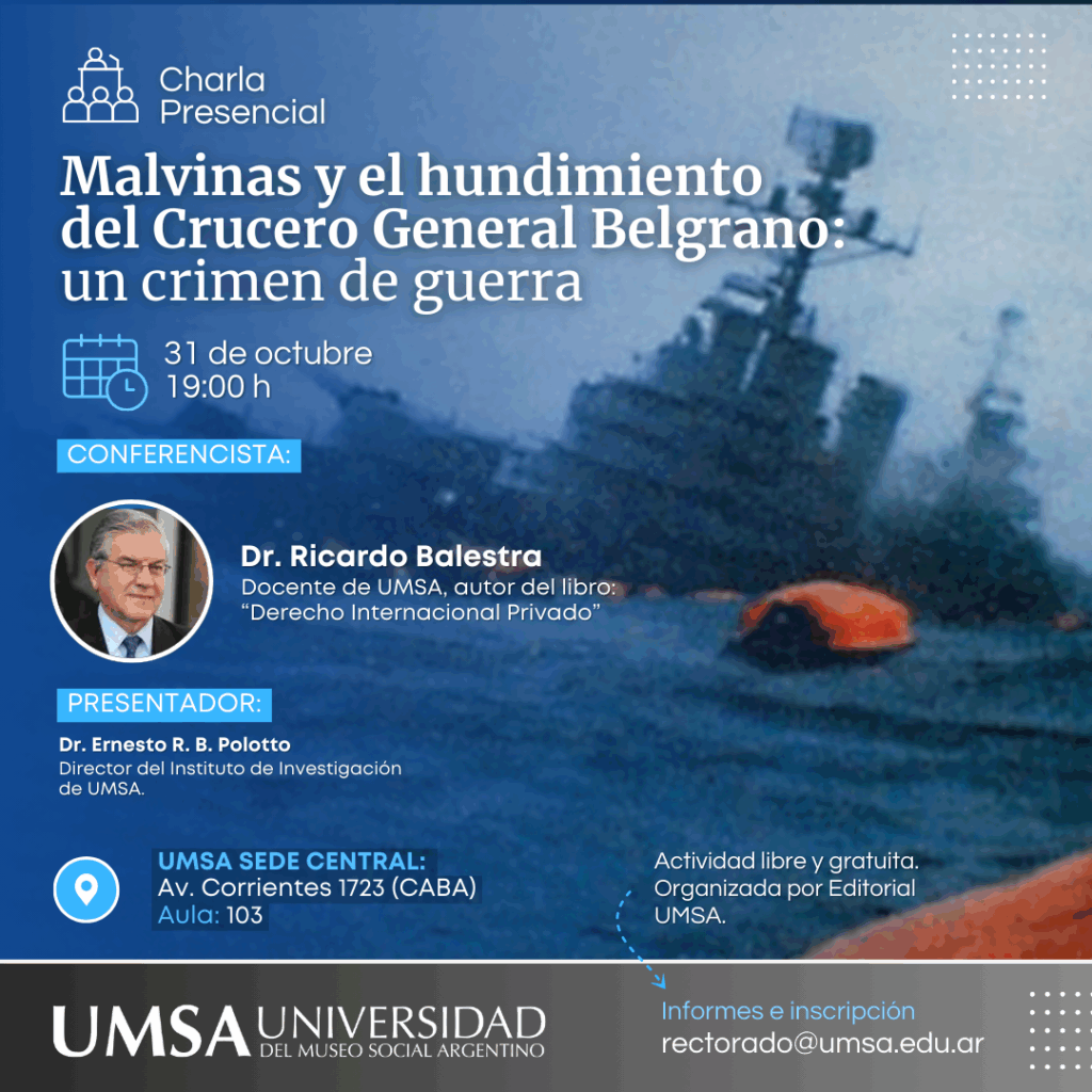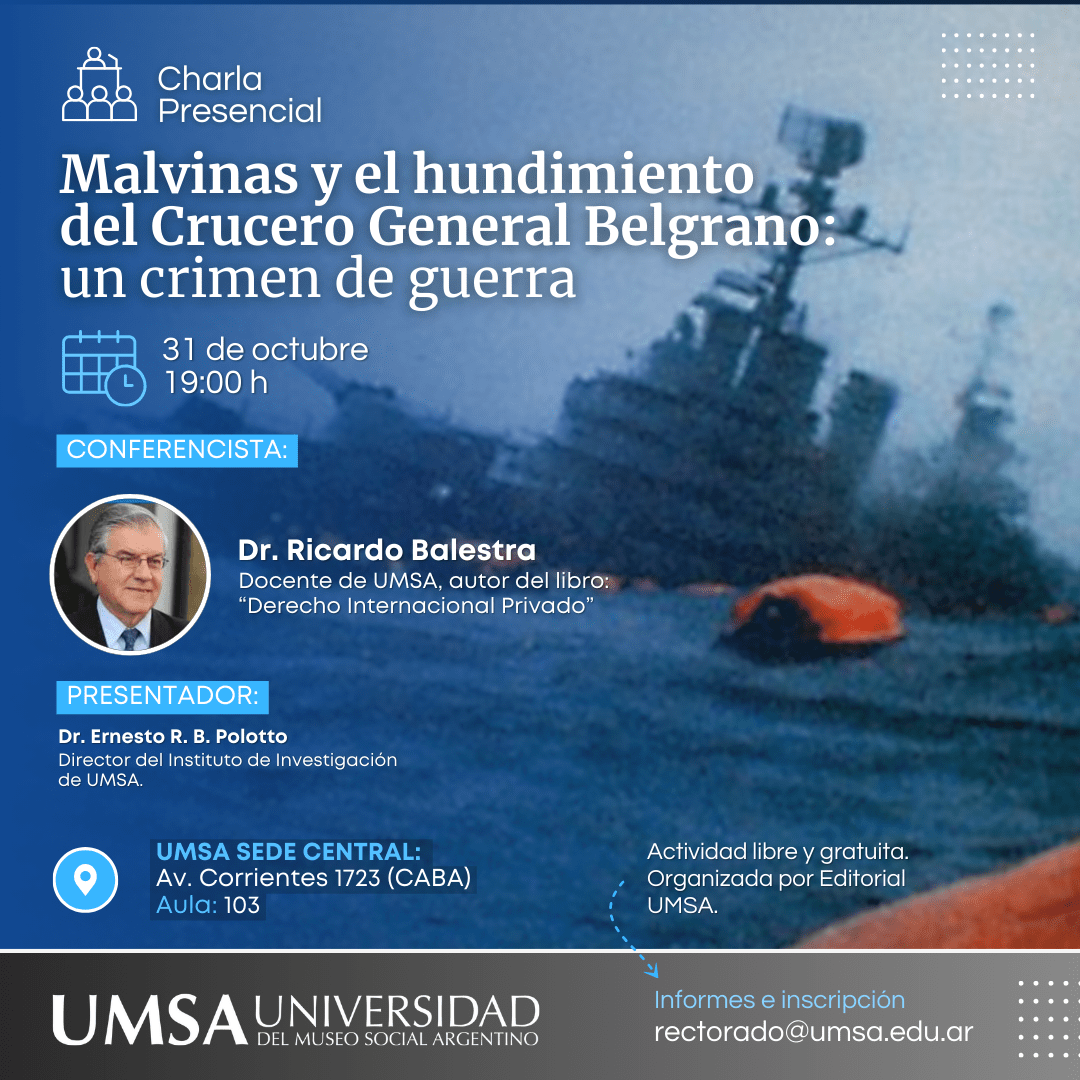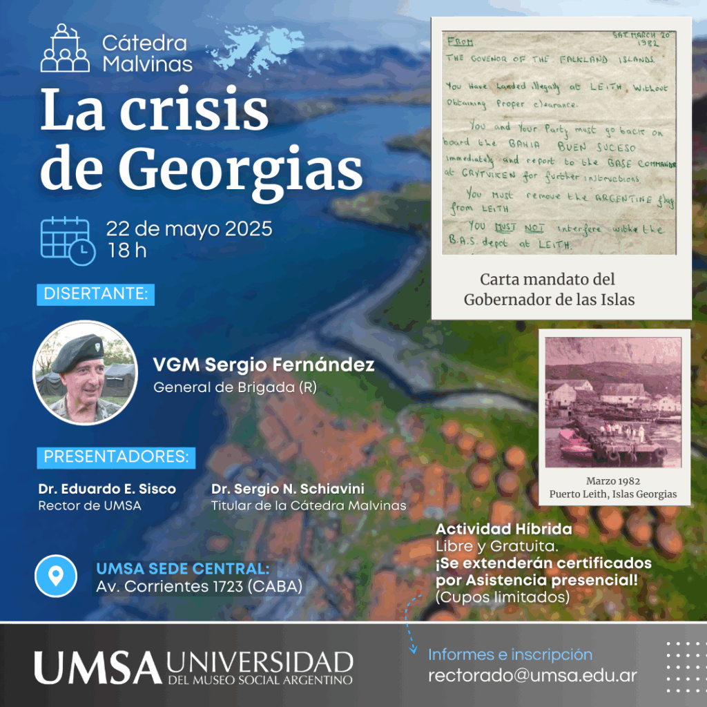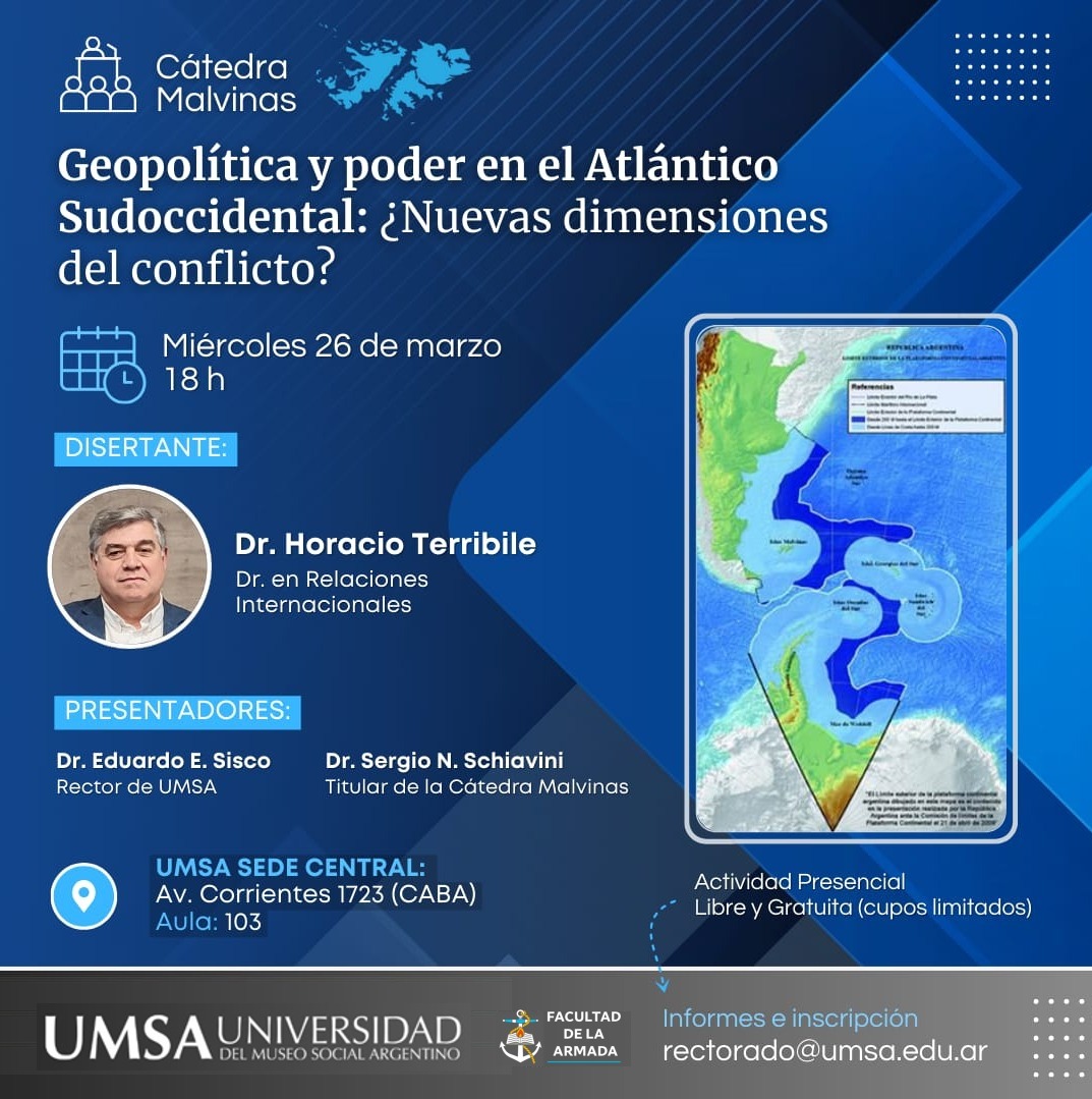 La Cátedra Permanente Malvinas Argentinas e Islas del Atlántico Sur de la Universidad del Museo Social Argentino (UMSA), fue creada con el propósito de desarrollar un espacio académico inspirado por la declaración y el objetivo consagrado en la cláusula primera de nuestra Constitución Nacional, promoviendo la instalación del tema, generación de contenidos, espacios de reflexión, análisis y producción académica, sobre las causas, consecuencias y proyecciones de la “Cuestión Malvinas” desde todos sus ángulos de abordaje, procurando en ese marco también, recuperar, preservar y transmitir los testimonios de quienes vivieron el conflicto bélico en las Islas Malvinas, que configura un hecho histórico que forma parte de nuestra identidad nacional.