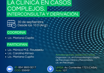 30/9 10HS. Conversatorio de Fonoaudiología y Psicología “La clínica en casos complejos. Interconsulta y derivación” 20 noviembre, 2022