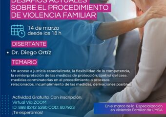 14/3 18hs. Encuentro virtual “Desafíos actuales sobre el procedimiento de Violencia Familiar”