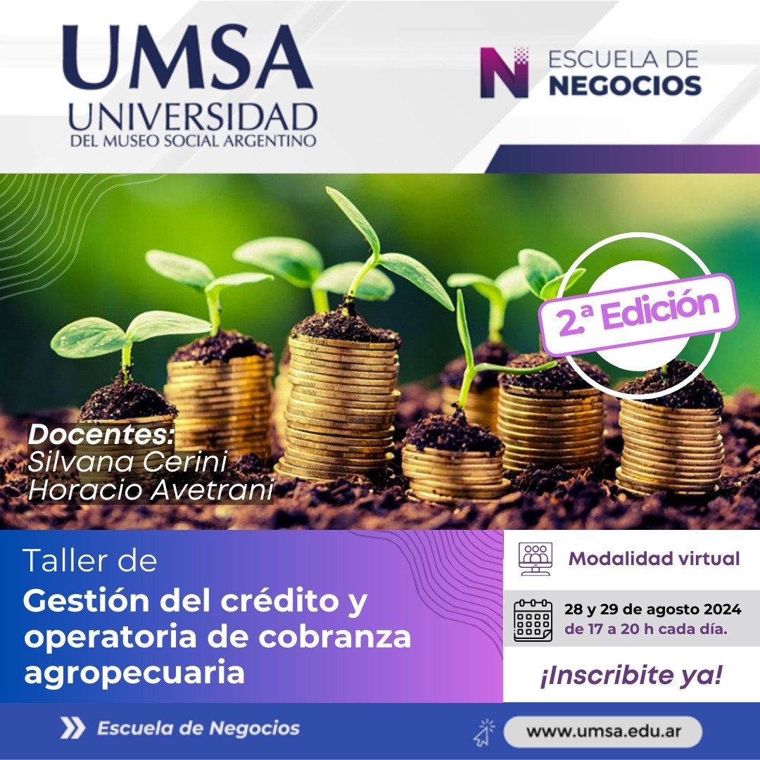08/2024 – 28 y 29 Taller arancelado de Gestión del Crédito y operatoria de Cobranza Agropecuaria – 2° edición
