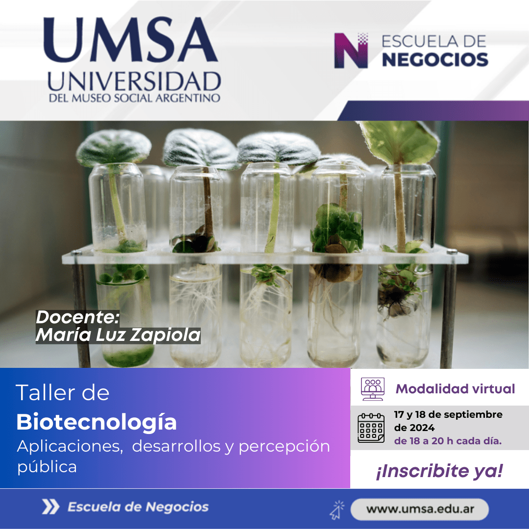 09/2024 – 17 y 18 Taller arancelado de Biotecnología. Aplicaciones, Desarrollos y Percepción Pública