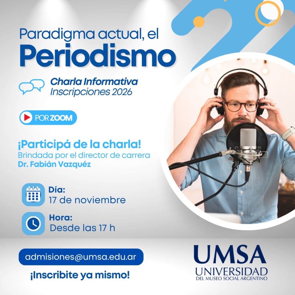 📌 Te esperamos en la Charla Informativa Online sobre Periodismo de UMSA, brindada por su Director, el Dr. Fabián Vázquez.