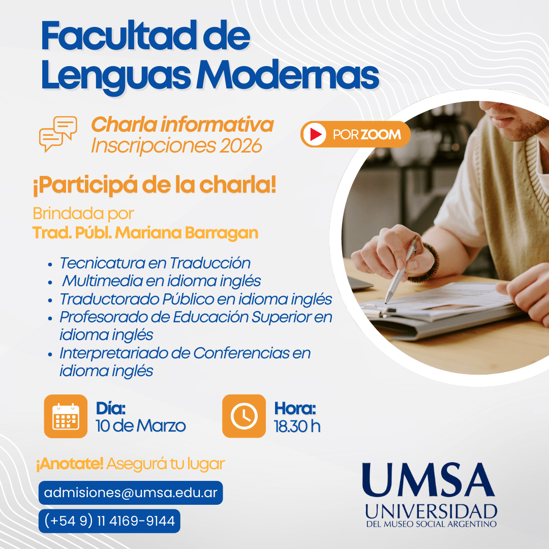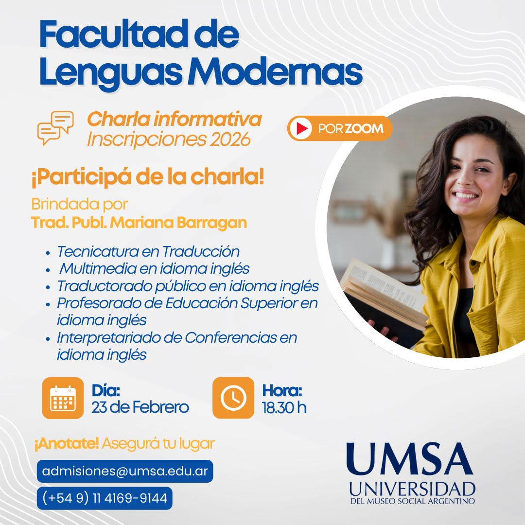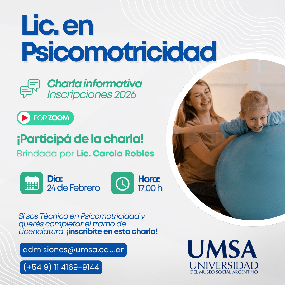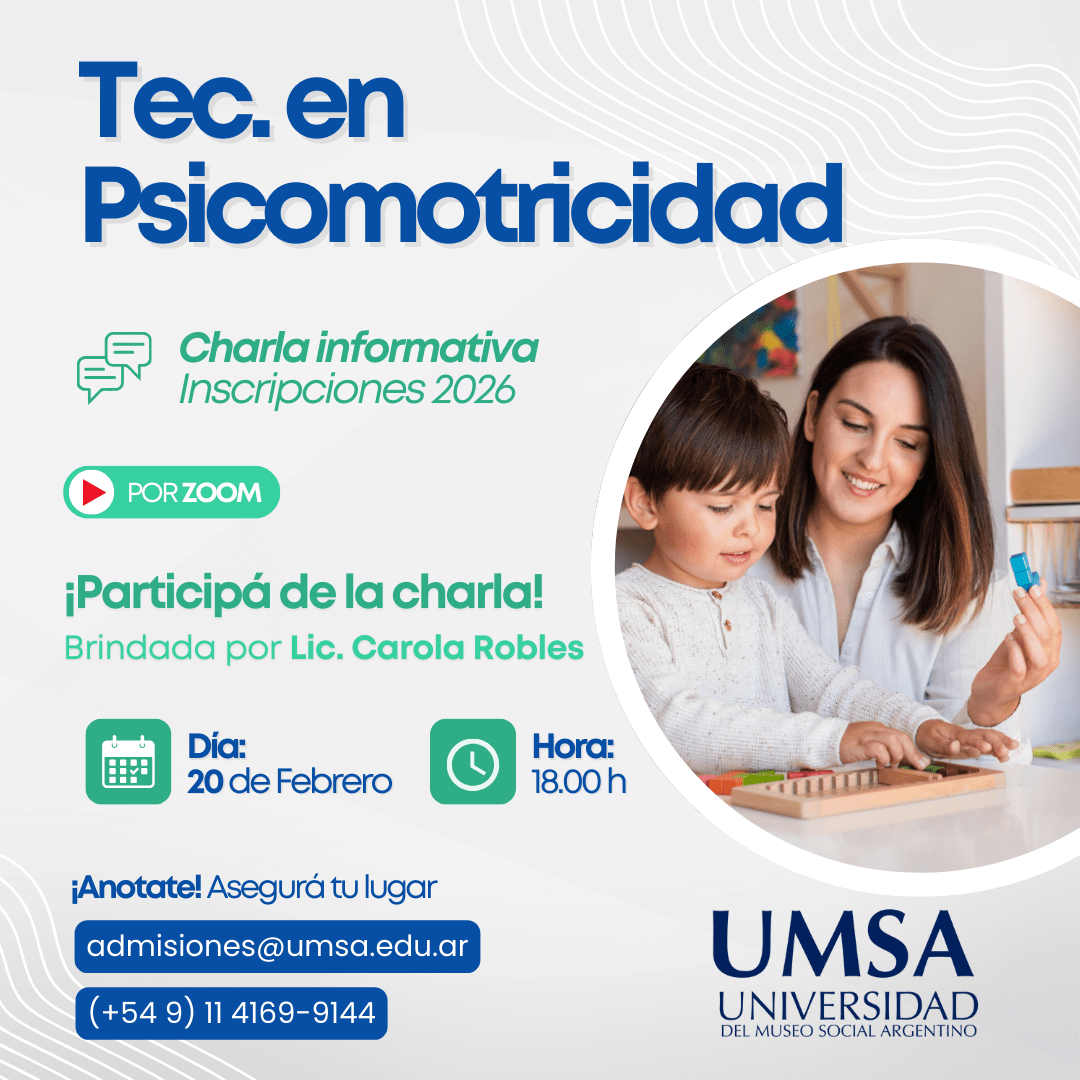 ¿Querés saber más sobre la Tecnicatura en Psicomotricidad? ¡Esta charla es para vos! 💬💻 📌 Te esperamos en la Charla Informativa Online sobre la tecnicatura en Psicomotricidad en UMSA, brindada por su Directora, la Lic. Carola Robles. Vas a poder:✅ Conocer el plan de estudios✅ Consultar todo lo que necesites✅ Informarte sobre la cursada que comienza en Marzo 2026 ¡Te esperamos para dar el primer paso en tu futuro profesional! 💼📚