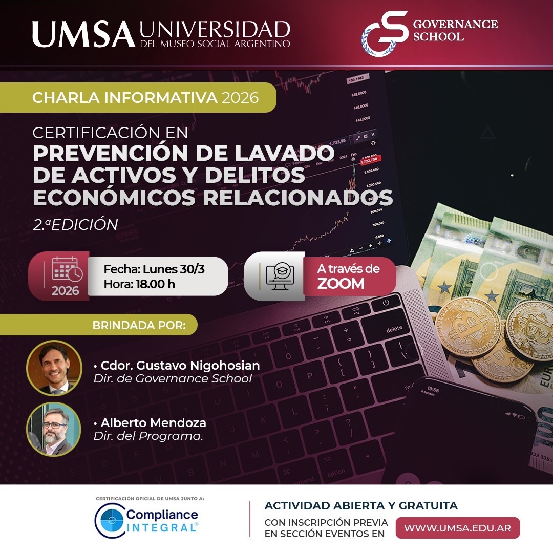 Charla informativa gratuita Participá de la charla informativa de la Certificación en Prevención de Lavado de Activos, una propuesta académica orientada a profesionales que buscan especializarse en compliance, regulación financiera y prevención de delitos económicos. En un contexto de creciente control normativo, formarse en prevención de lavado de dinero se vuelve clave para desempeñarse en áreas legales, financieras y de auditoría. ¿Qué vas a conocer en esta charla? Detalles del evento ¿A quién está dirigido? Formate en un área clave La prevención de lavado de activos es una de las áreas con mayor crecimiento en el […]