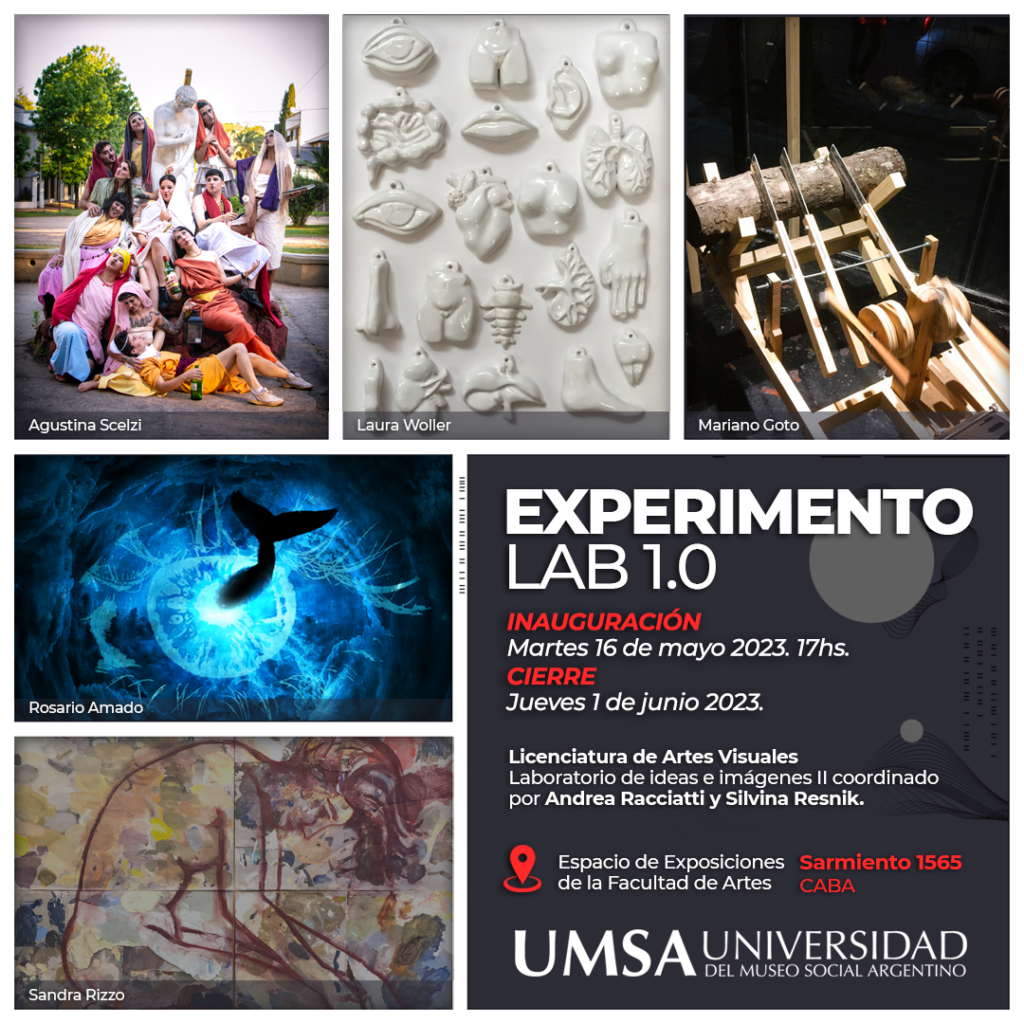 Experimento Lab es un espacio creado con el fin de dar a conocer una selección de experiencias realizadas por alumnos y alumnas de Laboratorio de ideas e imágenes II materia, que se dicta en el nivel avanzado de la Licenciatura en Artes Visuales de UMSA.