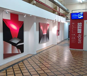 En esta oportunidad presentamos tres acrílicos de gran formato, “Cruz Roja”, “Cruz Ne-gra” y “Telón” que creemos son representativos de esta espacialidad original, que crea la artista utilizándolos a modo de cita en esta original composición.