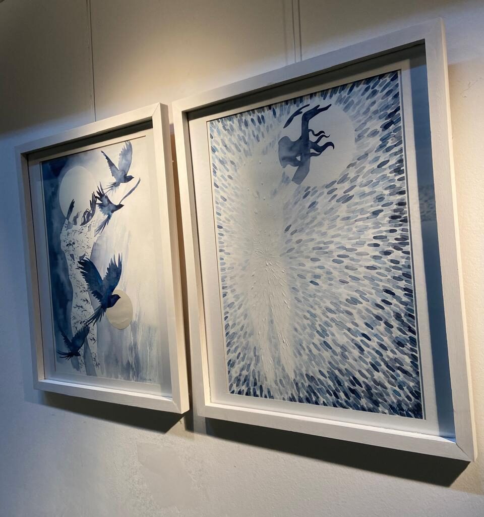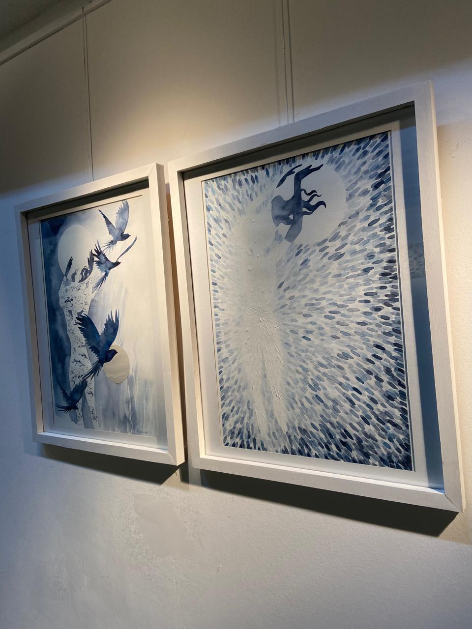Temas recurrentes en mi obra son la fugacidad del tiempo, la levedad del instante, la fragilidad, la búsqueda de la belleza. En estas pinturas intento expresarlos a través de la materia delgada, transparente y acuosa de la acuarela, la presencia de los blancos del papel y la fragilidad del soporte. Así, en una alquimia particular, el papel que proviene de la naturaleza deviene soporte, pero también línea, dibujo o plano.