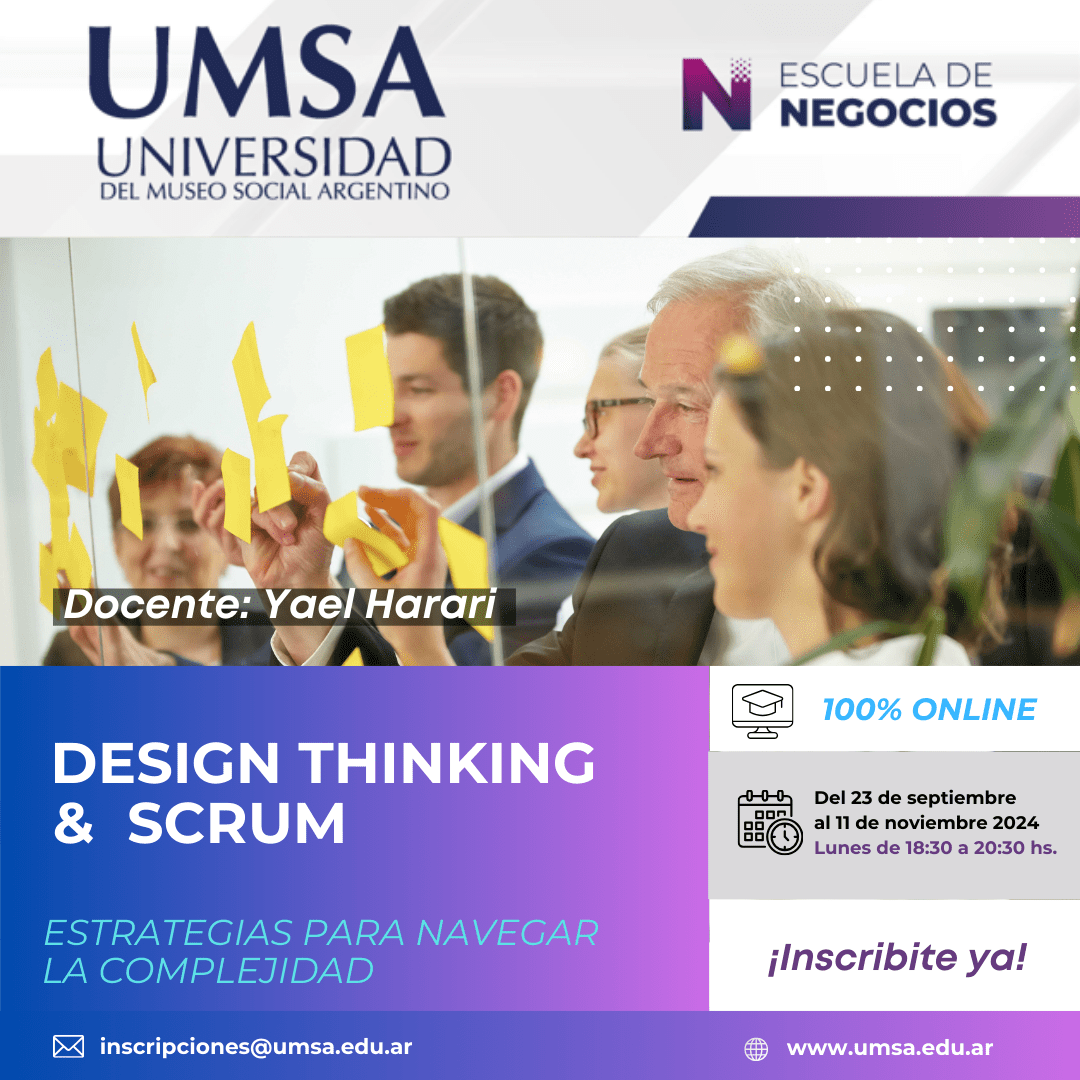 Desarrollar competencias en creatividad, innovación y agilidad para resolver problemas complejos, a través de la aplicación de Design Thinking y Scrum.