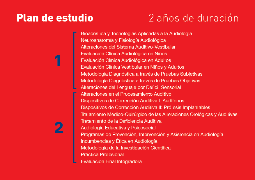 Esta propuesta apunta a lograr profesionales especialistas en audiología, debidamente habilitados, que pueden abarcar todas las áreas de intervención, a saber: